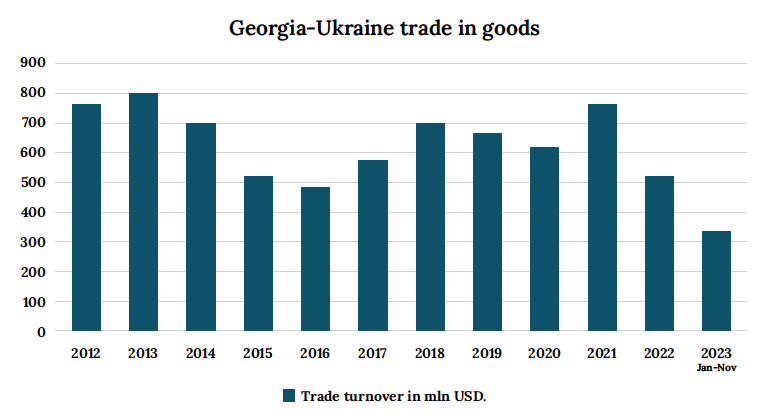 Despite deteriorating political ties between Ukraine and Georgia, trade relations were on the rise until 2022. After the signature of the Deep and Comprehensive Free Trade Areas (DCFTAs) with the EU, Ukraine and Georgia amended the bilateral trade agreement, paving the way for a functioning triangle of diagonal cumulative trade between the European Union, Ukraine, and Georgia.