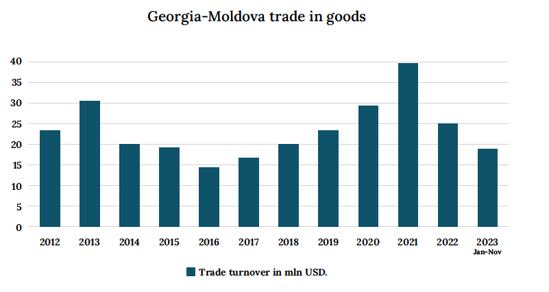 Georgia-Moldovan relations can be characterized as a “No News” policy. Moldova is the only Eastern Partner country that does not have an Embassy in Tbilisi. Since 2012, the two countries have only exchanged high-level visits once – the Prime Minister of Georgia visited Chisinau in October 2018, and the President of Moldova visited Georgia in July 2021. These rather negligible political ties are also reflected in trade relations. The trade turnover figure (USD 238 million) between Moldova and Georgia for almost 11 years (2012-2023) is far less than Georgia-Ukraine trade (USD 326 million) for January- November 2023.
